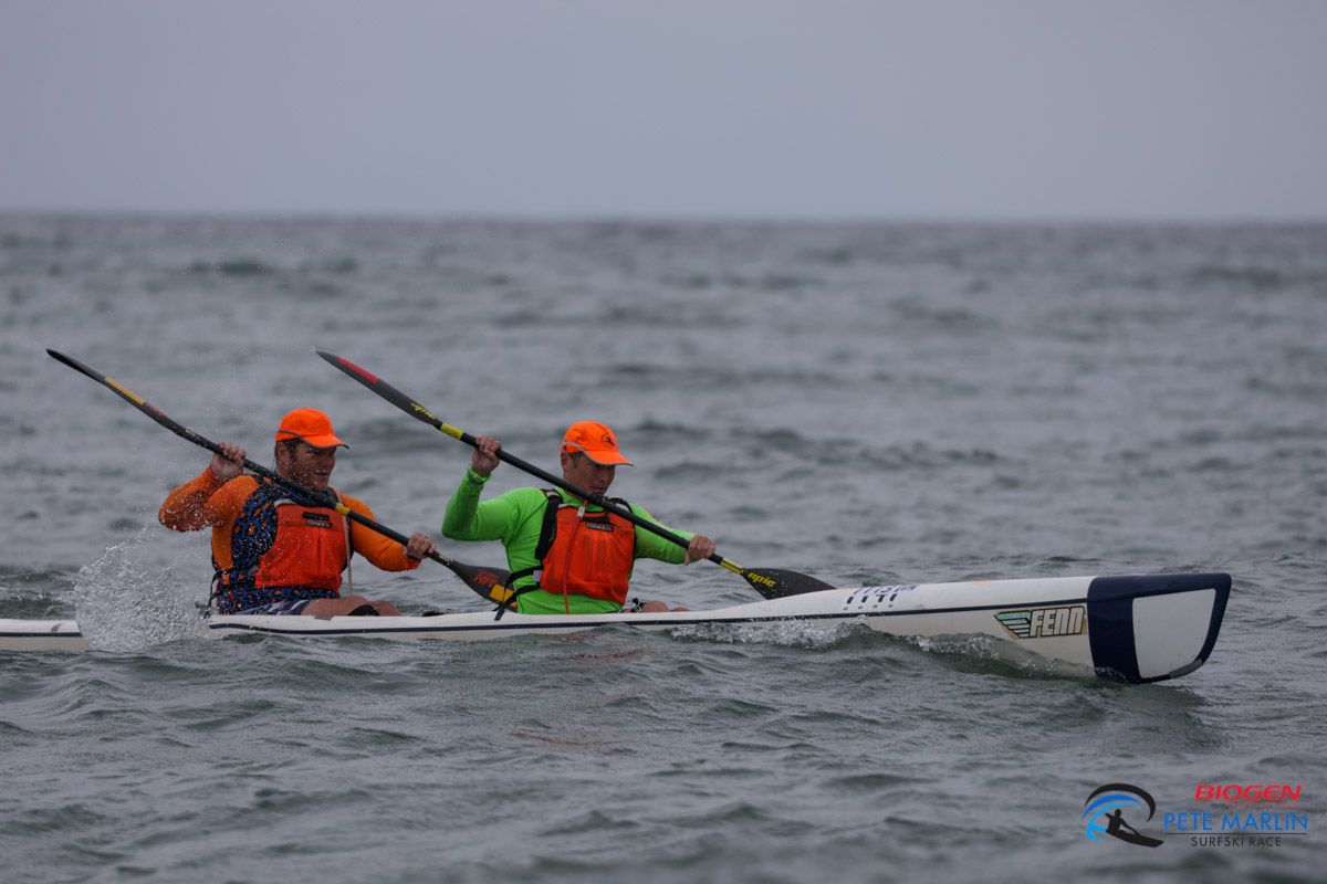 Following on from The World Surfski Champs last weekend in Durban the salty sea dog people moved down to East London to contest the Biogen Pete Marlin. On the Saturday 235 singles finished the 22km from Orient Beach to Yellow Sands in what were relatively mild and tame conditions with a small wave or two to beat on the way out, not too much in the way of wind or swell to help on the way home and no massive surf coming into Yellows either, but cutting the point is always dicey.