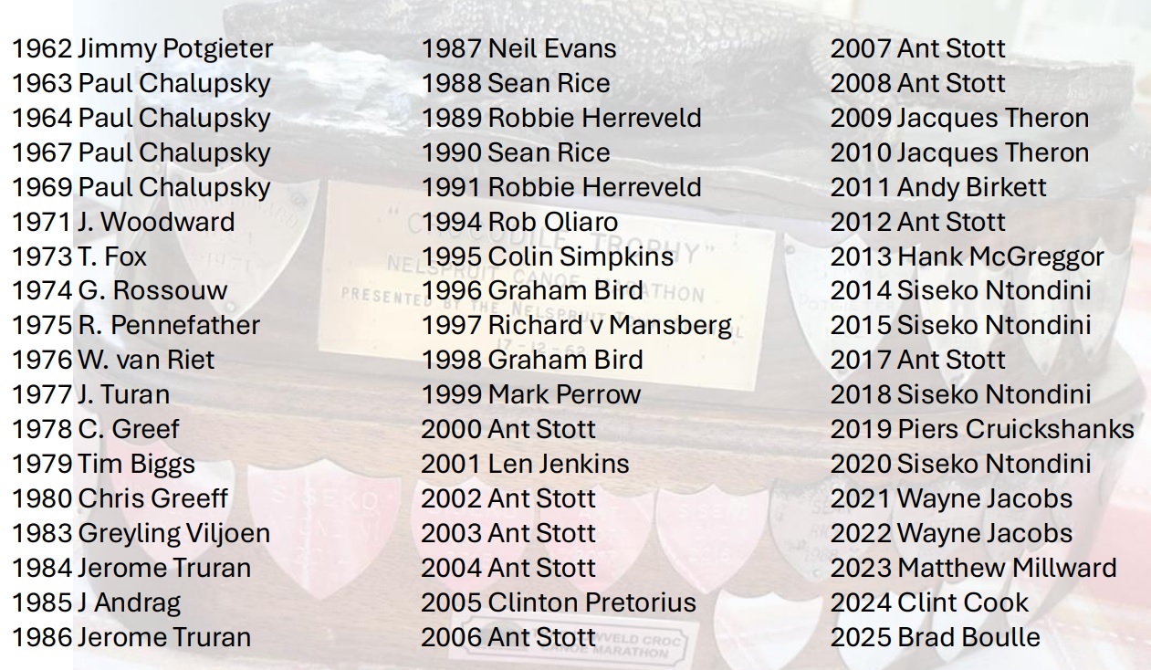 What a weekend of paddling! Hopefully these two great races won’t be on the same weekend again – and hopefully the likes of Andy Birkett (2011 winner) will get his racing snake mates to try and see if they can join the long list of legendary names inscribed on the iconic Lowveld Croc trophy.