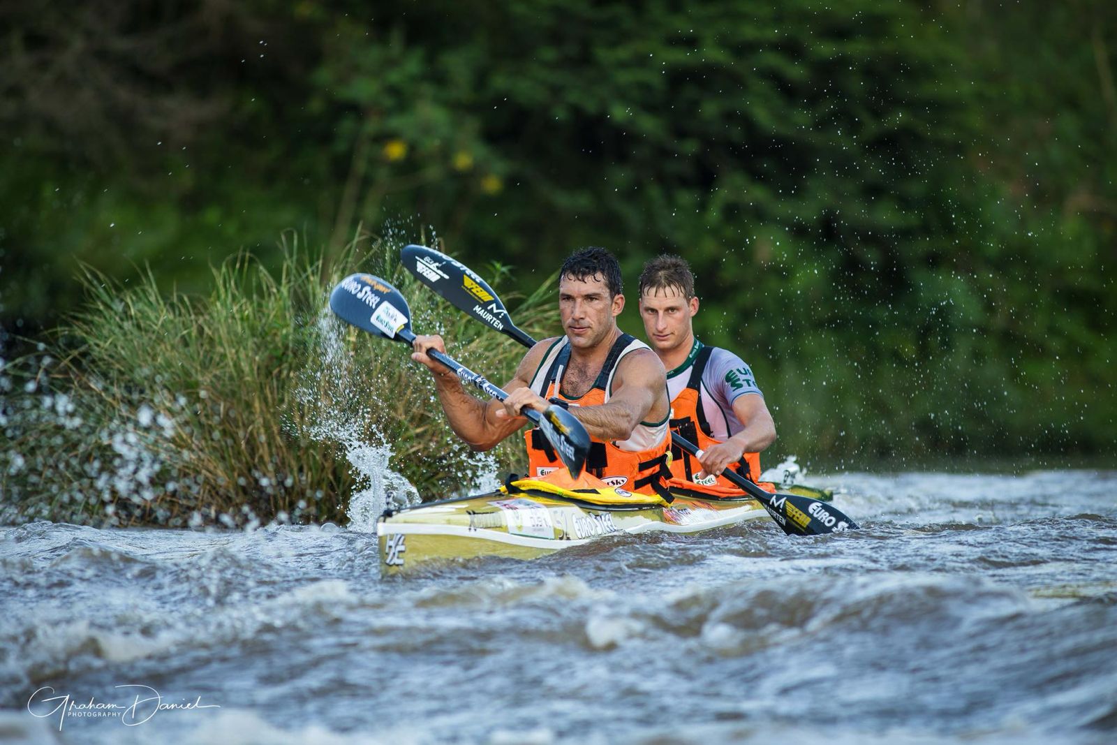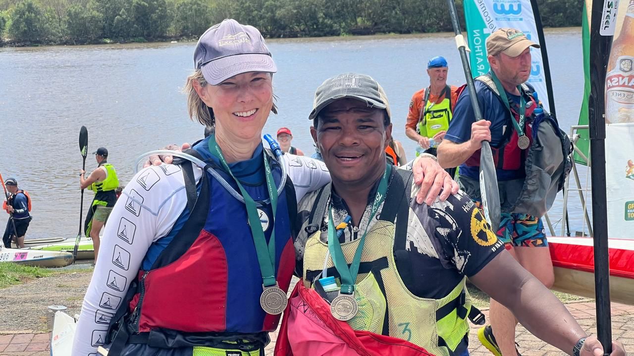 Piero & Michael also had a very long day 2. “We wrapped above washing machine. Fiber glassed at gauging weir. It held until big bend. Then fiber glassed again just before the dam. Lots of haaaat mixes.” And finish they did; albeit in a different boat. Levick & Hardi had a good 3 days, but with more than their fair share of broken paddles and swims. Mo had 3 clean days with no swims – he’s learnt that a stable boat makes a major difference, but the Dusi reminded him of the need to train. Kevin & Daryn were beaten home by Bob & Kirsty, who were behind by Ryno & Gillian; while Nosipho & Lesedi were ahead of them. Daniel and Leon were in the middle of the mix while chief Nkosi, who paddled with a mate from KZN, finished his 20th Dusi.